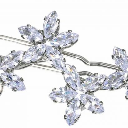 Die Haarnadel – Floral Silver schimmert silberfarben und hat ein florales Design. Die Haarspange ist mit Blumen aus Cubic Zirkonia Steinen verziert. Haarnadel Silberfarben Cubic Zirkonia Floral Blumen Länge: 5,5 cm Breite: 2 cm