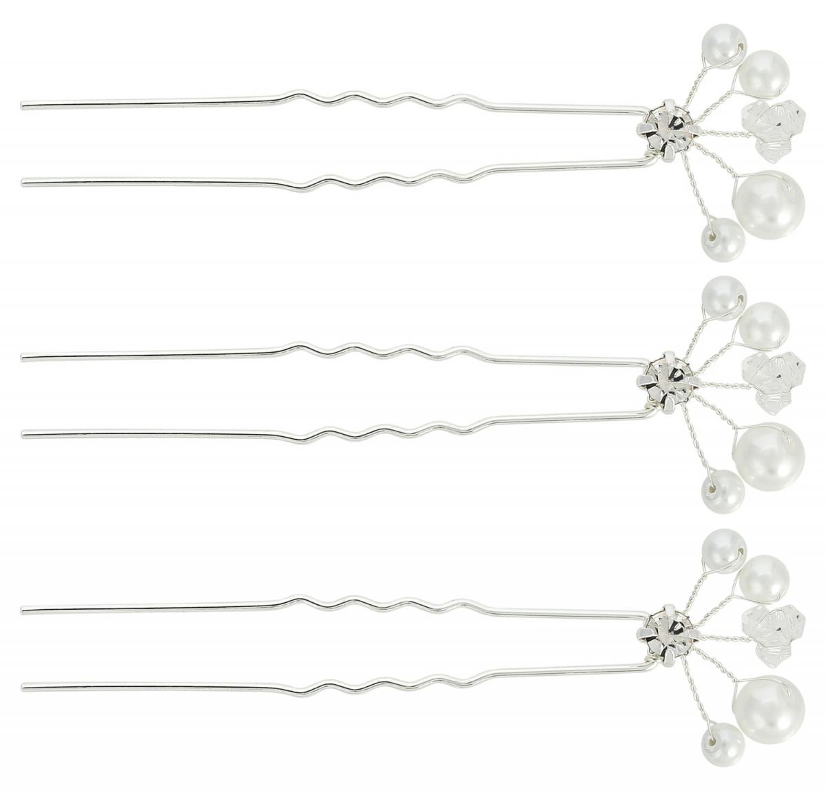 – Set: Drei Haarnadeln – Silberfarben – Herzförmig – Glaskristallsteine Länge: 7 cm Breite: 0,5 cm Durchmesser Herz: 0,7 cm