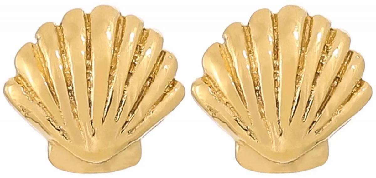 Die Ohrstecker – Sweet Shells schimmern goldfarben und bestehen aus 925er Echtsilber. Die Ohrringe haben die Form von kleinen Muscheln und lassen sich toll mit weiterem Muschelschmuck kombinieren! Ohrstecker Goldfarben 925er Echtsilber Muschel Durchmesser: 0,6 cm