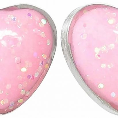 Die Ohrstecker – Pretty Hearts schimmern silberfarben und bestehen aus Edelstahl. Die Ohrstecker sind als Herzen designt und sind mit pinkem Glitzer geschmückt. Ohrstecker Silberfarben, Mehrfarbig Edelstahl Strasssteine Schmetterling Kinderkollektion Durchmesser: 0,6 cm