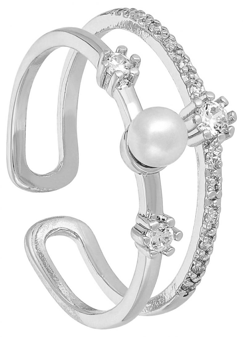 – Ring – Silberfarben – Mit Cubic Zirkonia Steinen – Mit einer Kunstperle in cremefarben Größe: individuell Breite: 0,6 cm